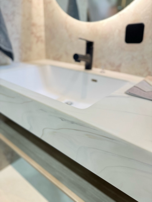 ウッドワンブースでは和モダンに仕上げたキッチン。