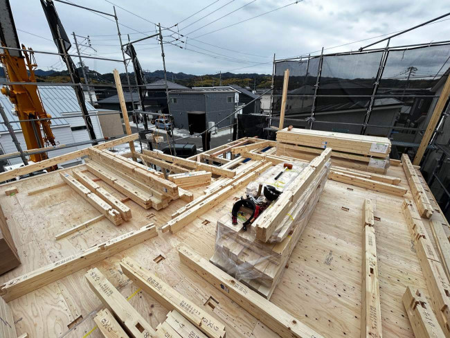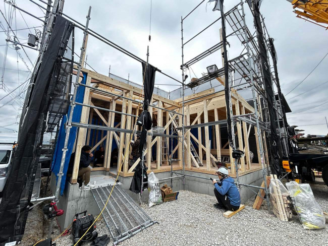 2026.02.16 工事 Y様邸 上棟🏠 先日泉佐野市、Y様邸上棟日を迎えました!✨午前中は曇り空でとても寒い中での作業となりました。お昼からはだんだん太陽が出始め、とても良いお天気へと☀これから素敵なお家の完成が待ち遠しいです🏠🌈Y様、上棟おめでとうございます✨