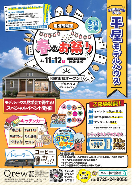 来月、4月11日(土)&12日(日)にNewモデルハウスイベントを開催いたします🌈🌈
